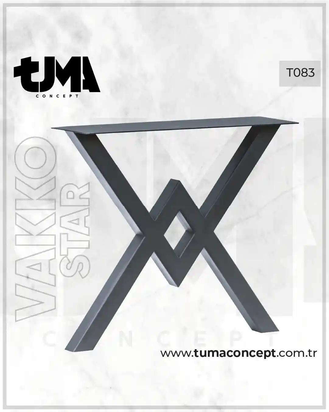TUMA CONCEPT T083 VAKKO STAR Endüstriyel Metal Masa Ayağı: İkonik X-Yıldız Tasarım, Sarsılmaz Denge