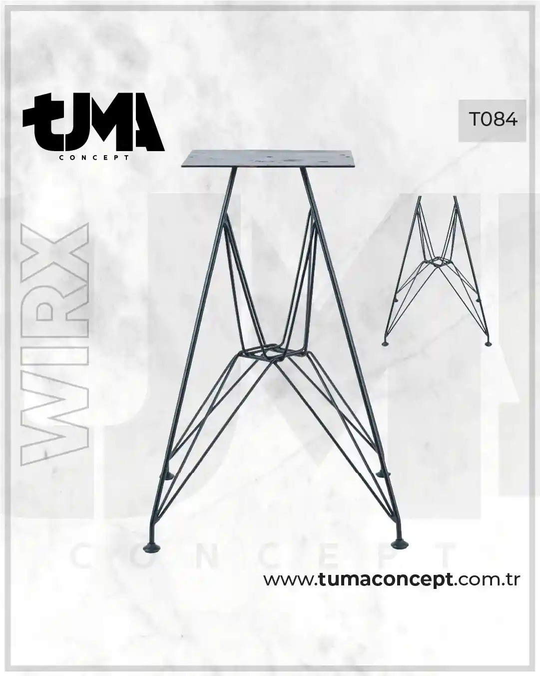 TUMA CONCEPT T084 WIRX Endüstriyel Metal Masa Ayağı: Tel-Kafes X Tasarım, Hafif Görünümle Yüksek Rijitlik