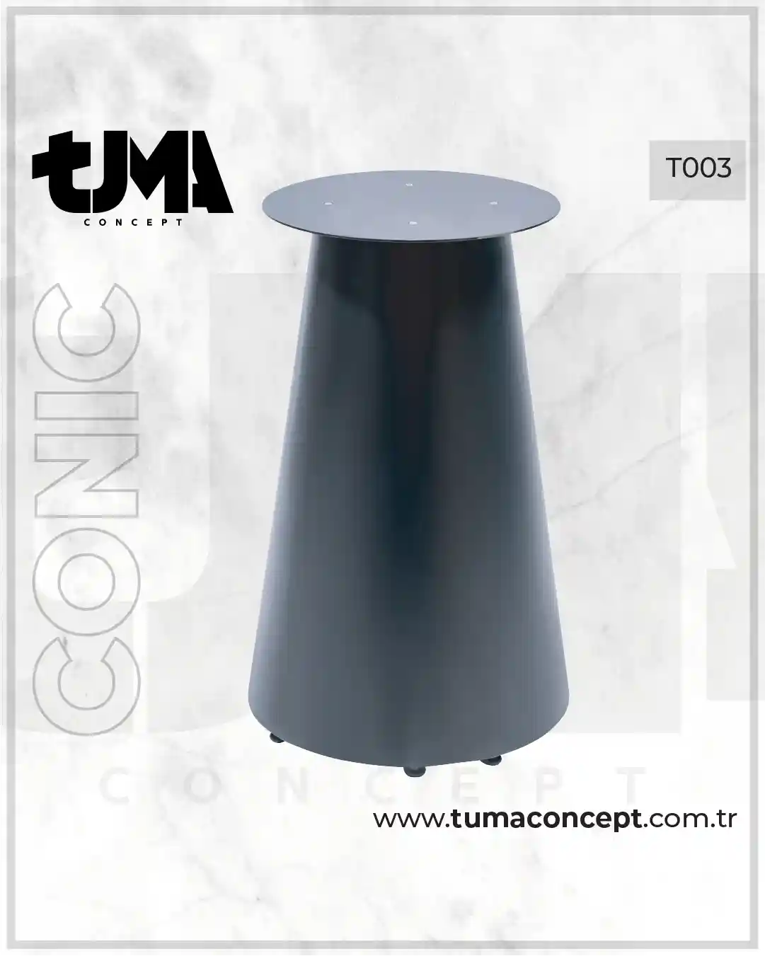 TUMA CONCEPT T003 Conic Metal Masa Ayağı: Konik Gövde, Yuvarlak Üst Montaj Plakası ve Düşük Ağırlık Merkezi