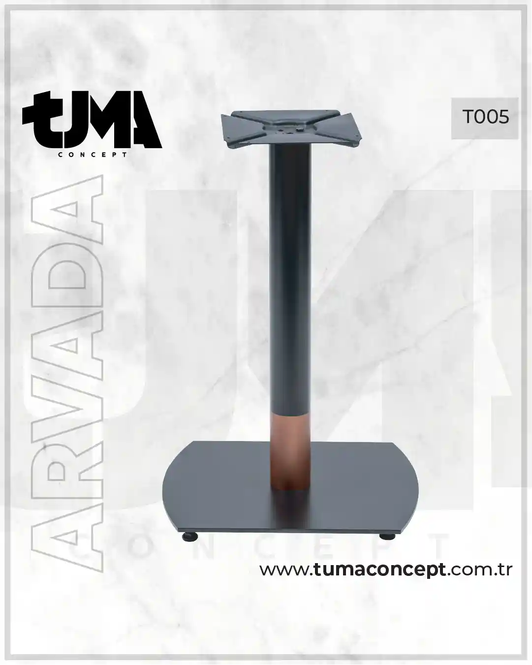 TUMA CONCEPT T005 Arvada Metal Masa Ayağı: Silindirik Kolon, Kapsül (oval) Form Geniş Taban, Bakır Tonlu Manşon ve 4 Kollu Üst Taşıyıcı