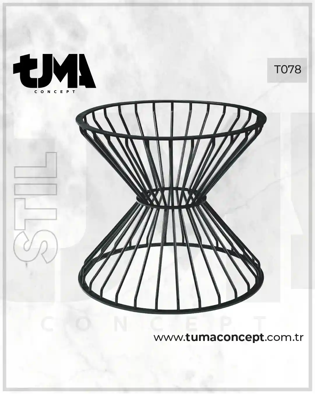 Tuma Concept T078 STIL: saat kumu formunda tel-kafes metal masa/sehpa ayağı. Mat siyah toz boya, havadar görünüm, yüksek rijitlik ve kolay montaj. Cafe ve ev projeleri için ideal.