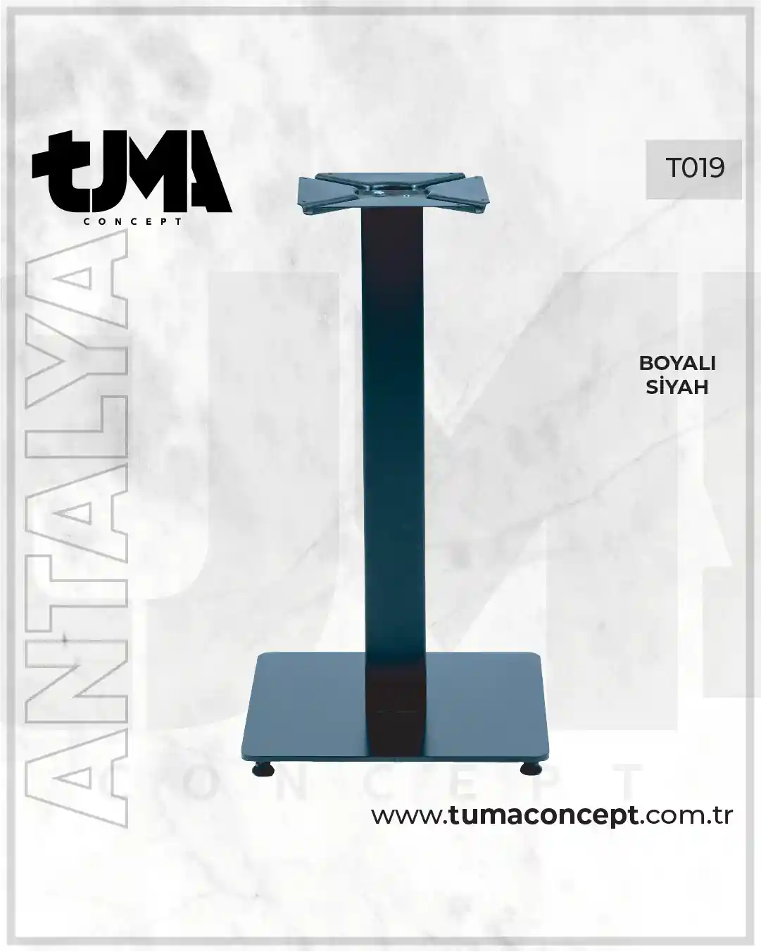 TUMA CONCEPT T019 Antalya Boyalı Siyah Metal Masa Ayağı: Kare Kesit Kolon, Geniş Kare Taban ve 4 Kollu Üst Taşıyıcı